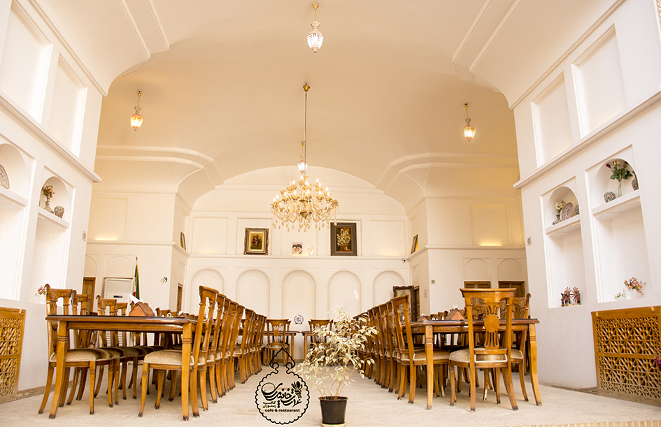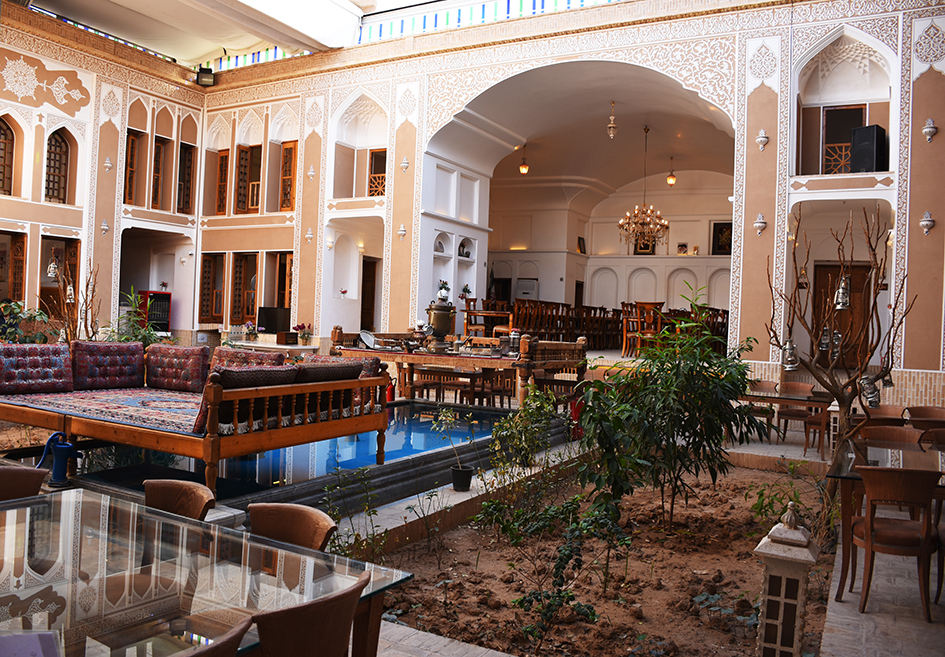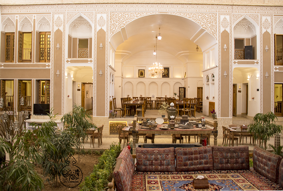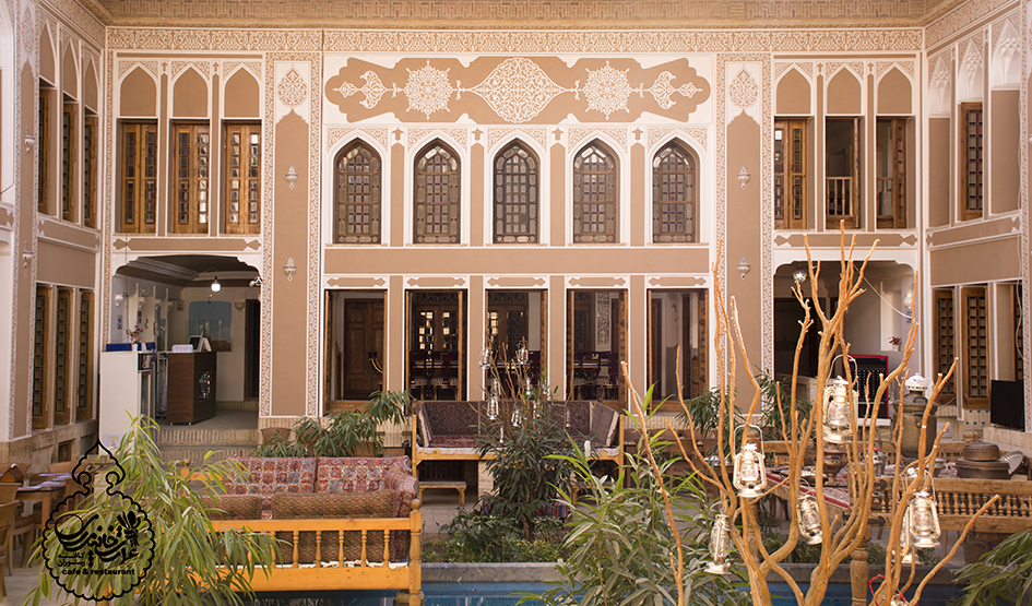 وسعت بیش از سیصد متر مربعی با چشم اندازی استثنایی و سبک استقرار حوض بزرگ در عرض حیاط و در امتداد تالار بزرگ و طاق رفیع و دهانه وسیع و کم نظیر به اصطلاح سقف شکم دریده با بهره مندی از دو بادگیر سر به اسمان خراشیده و طاقچه های پرتعداد و منظم و اتاقهای دو طبقه مجاور و وجود سه باب اتاق پنج دری در سه جهت حیاط و دیواره های مرتفع با بکارگیری هنر گچ بری و مقرنس کاری و سیم گل و دمگیری و شرفی های حصیری مشرف به حیاط، تحسین و شگفتی هر بیننده ای را برخواهد انگیخت.